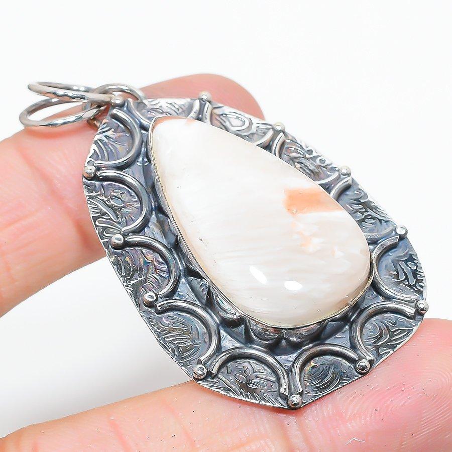 Подвеска ручной работы из стерлингового серебра 925 пробы с натуральным камнем сколецитом 2,29 дюйма