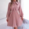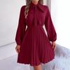 Женская осенне-зимняя плиссированная юбка с длинными рукавами и завязками на талии.