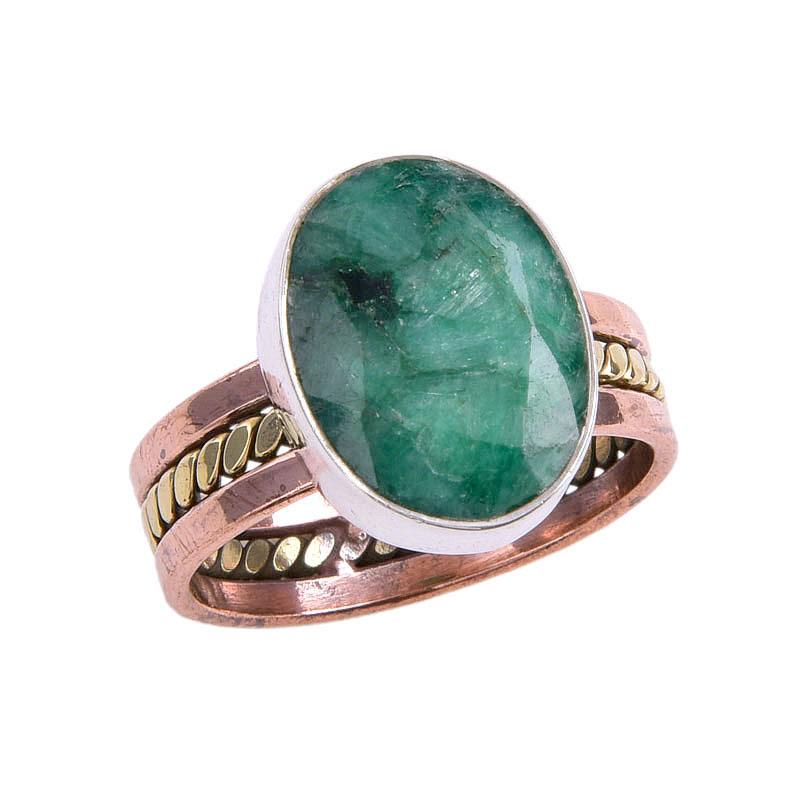 Изумруд(Смоделированный) Двухцветное кольцо ручной работы из стерлингового серебра 925 пробы S.10 D6J18