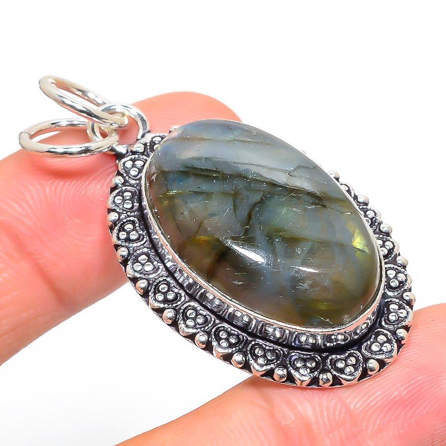 Подвеска ручной работы из стерлингового серебра 925 пробы с натуральным лабрадоритом 2,05 дюйма