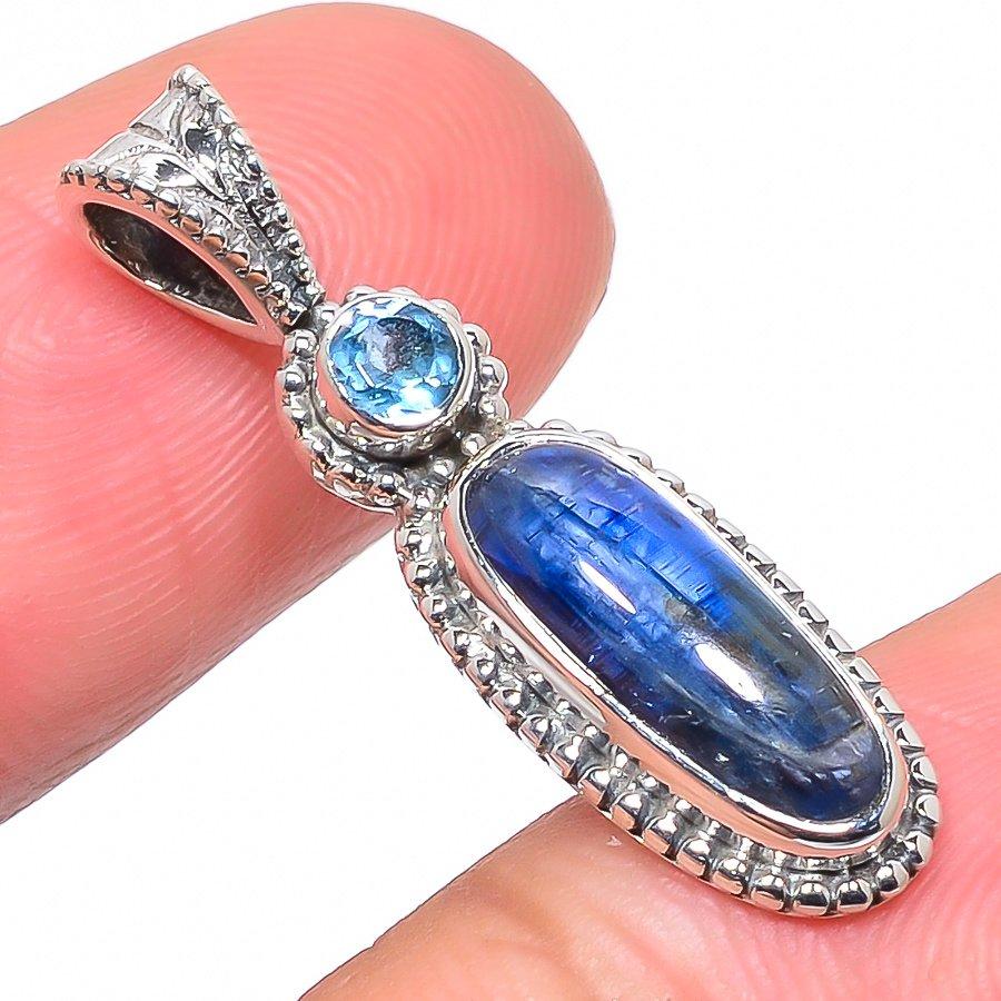 Подвеска из натурального кианита, голубого топаза, стерлингового серебра 925 пробы, 1,26 дюйма, z7d87