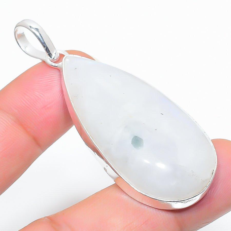 Подвеска из стерлингового серебра 925 пробы с натуральным радужным лунным камнем 2,36 дюйма