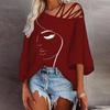 Летняя женская футболка, модные свободные повседневные топы с наклонным вырезом, футболка с принтом