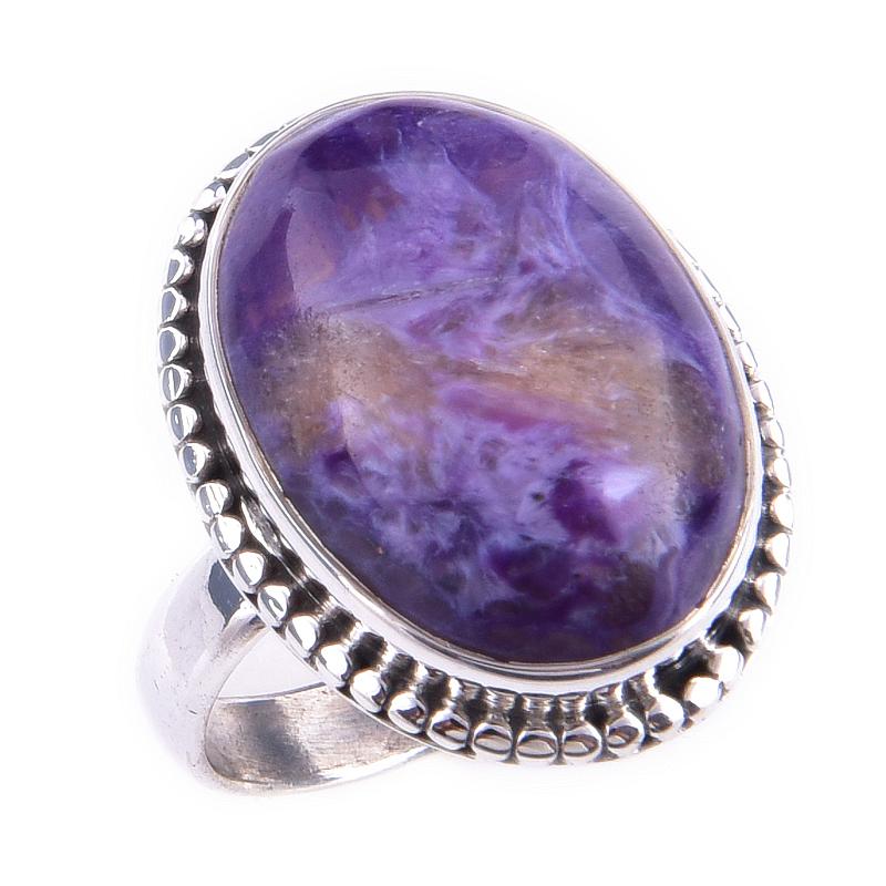 Кольцо из чистого серебра 925 пробы с натуральным чароитом, размер 6, t9I07