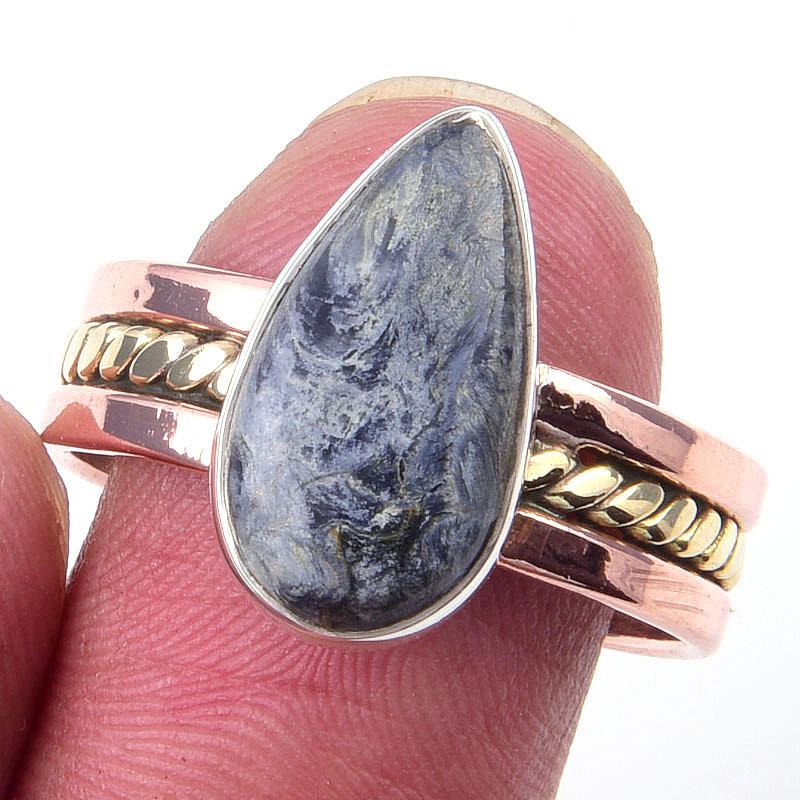 Кольцо из двухцветного серебра 925 пробы с натуральным драгоценным камнем Питерсит S.10 s3b66 — купить товар онлайн с бесплатной доставкой по всему миру!