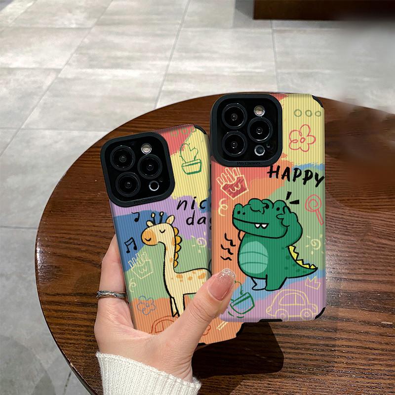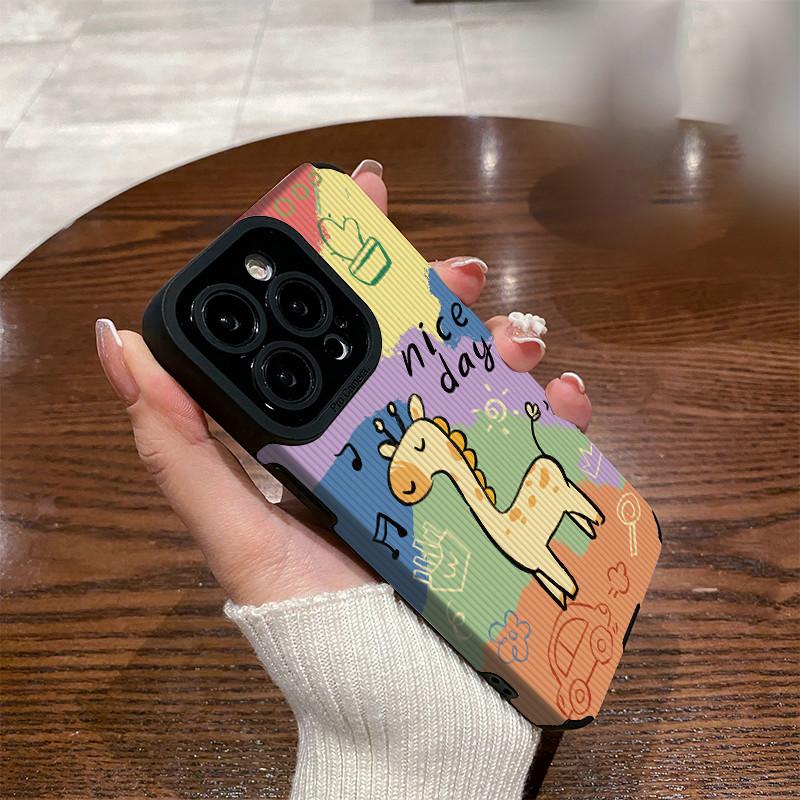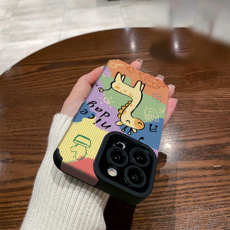 Мягкий силиконовый чехол для телефона с вертикальным зернистым рисунком и мультяшным принтом, задняя крышка с объективом камеры, полная защита для iPhone