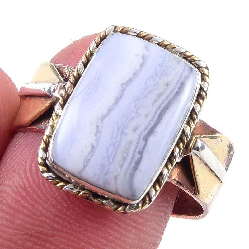 Кольцо с натуральным голубым кружевным агатом, двухцветное, из стерлингового серебра 925 пробы, размер 9, w5m71 — купить товар онлайн с бесплатной доставкой по всему миру!