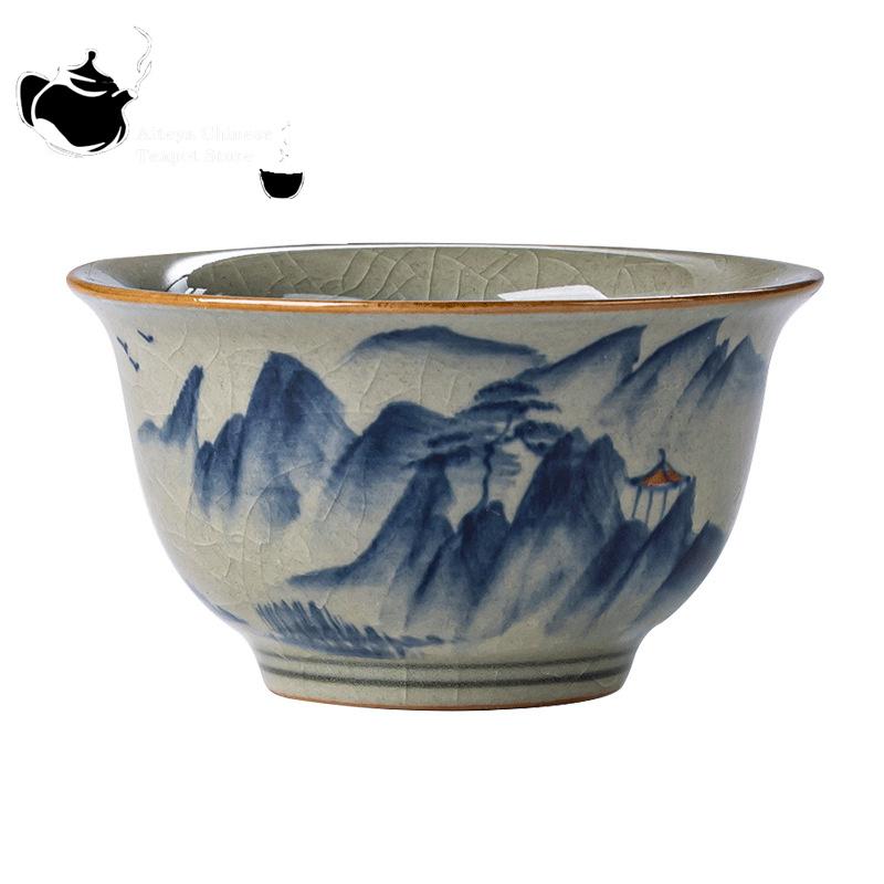Винтажная чашка для приготовления чая с ручной росписью, старая керамика, глиняная печь, чашка для приготовления чая кунг-фу, одиночная чашка, заваривание синего и белого чая C