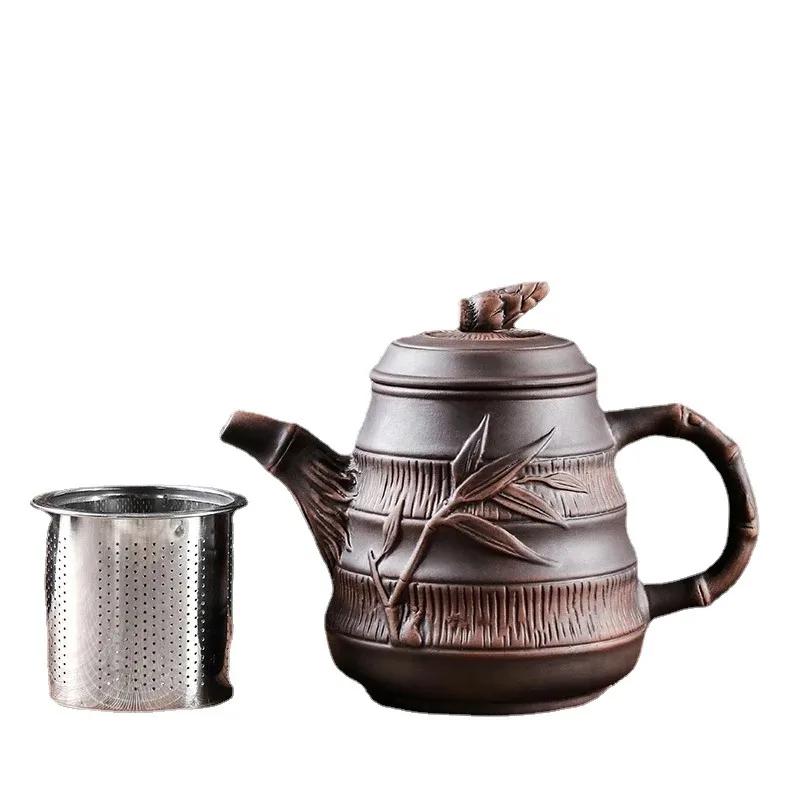 Исинский горшок с фиолетовым песком, большой весенний бамбуковый горшок для побегов с фильтром из нержавеющей стали, чайник с красной грязью, большой чайный сервиз кунг-фу