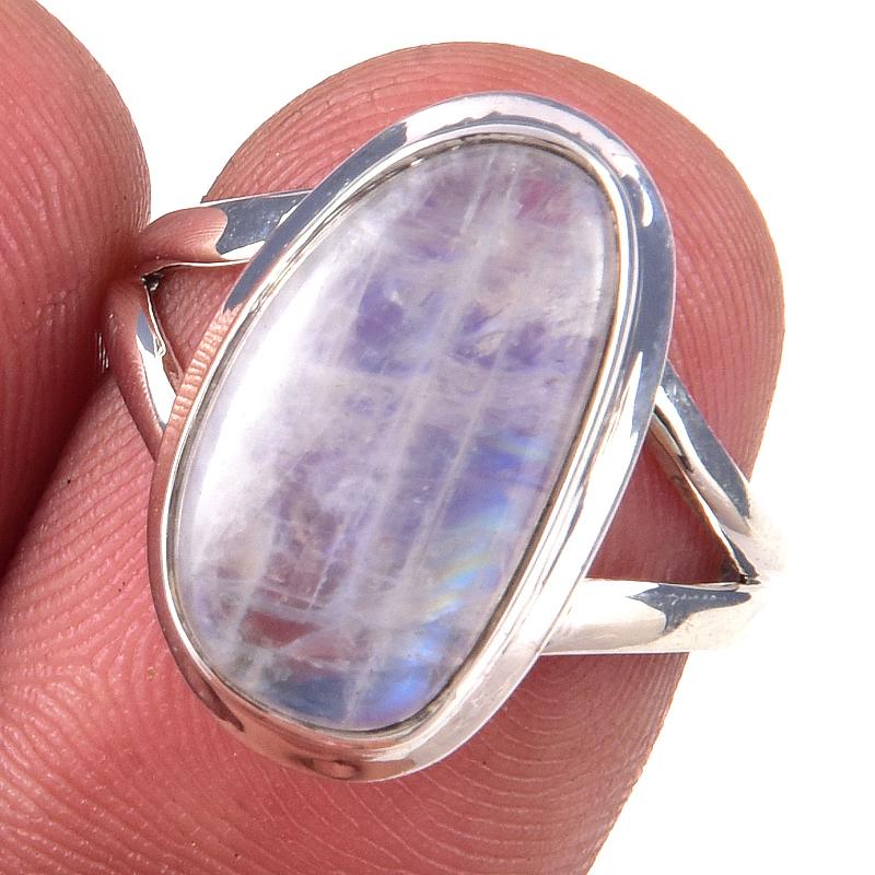 Кольцо из стерлингового серебра 925 пробы с натуральным радужным лунным камнем ручной работы S.7 T5Z31
