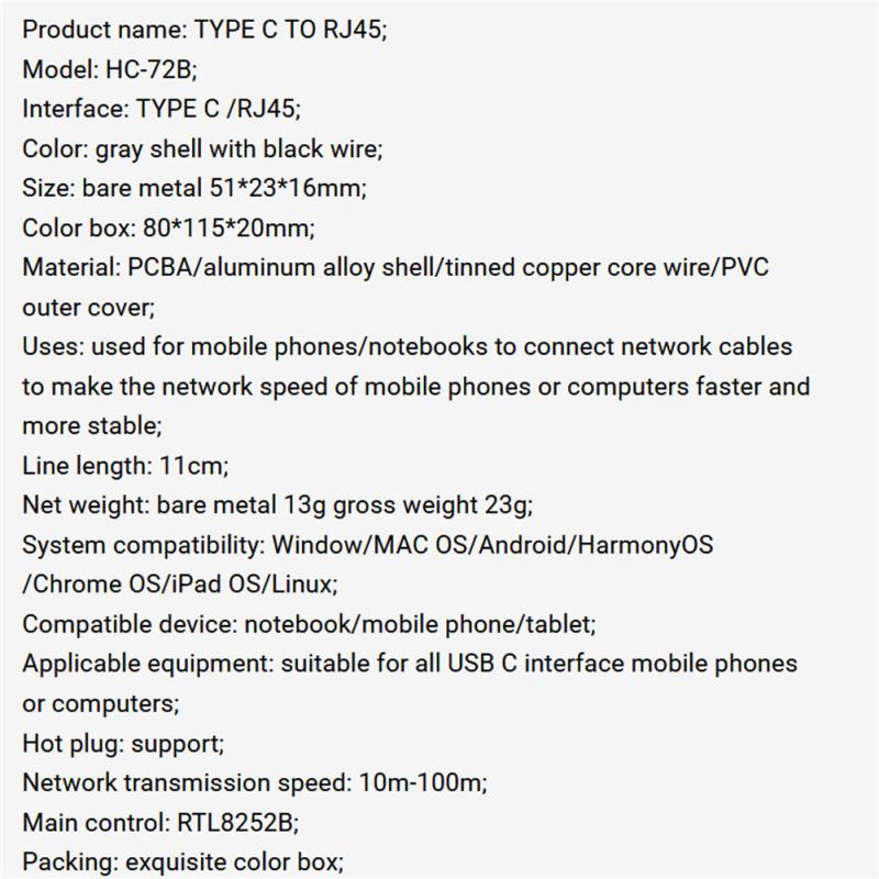 Сетевой адаптер Type-c к RJ45, проводной USB-C Ethernet-конвертер для мобильного компьютера, ноутбука Macbook