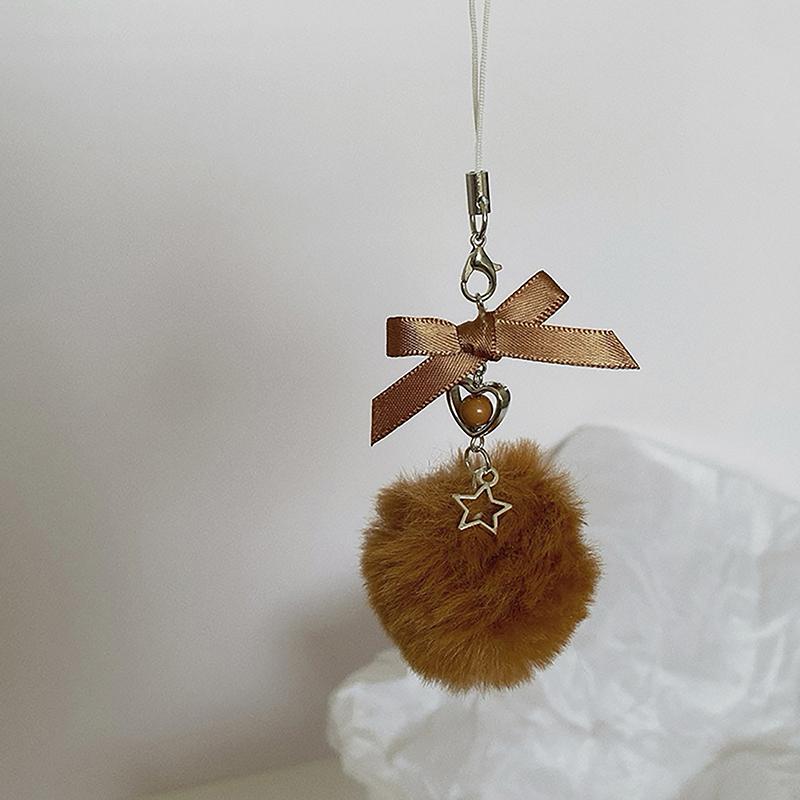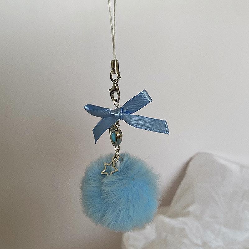 Модная цепочка для мобильного телефона с меховым шариком и бантом, милый и сладкий брелок с подвеской