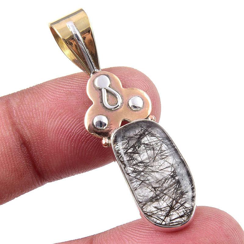 Двухцветный подарочный кулон из чистого серебра 925 пробы с натуральным черным рутилом, размер 1,75 дюйма, A4B66 — купить товар онлайн с бесплатной доставкой по всему миру!