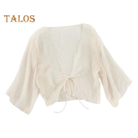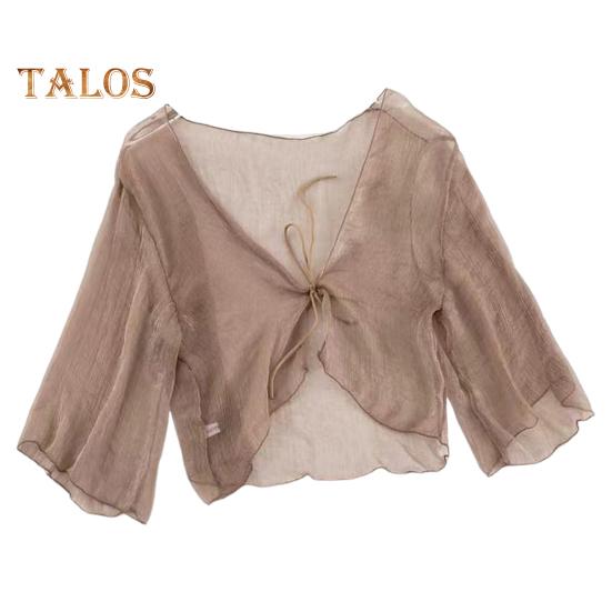 Оставайтесь стильными и защищенными от солнца с этим элегантным солнцезащитным кардиганом.. Этот кардиган, изготовленный из высококачественного шифона, легкий, дышащий и приятный для кожи.. Прозрачный дизайн с завязкой спереди придаст вашему образу нотку ретро-элегантности.