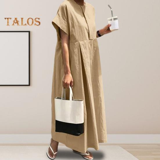 Подчеркните свой стиль с помощью этого женского платья с завышенной талией, которое подчеркнет вашу элегантность и очарование.. Свободный крой и плиссированные детали этого длинного платья стройнят, сохраняя при этом простой и модный вид..