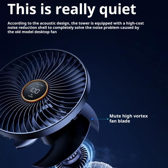 Интеллектуальный цифровой дисплей позволяет отслеживать оставшийся уровень заряда батареи и регулировать скорость вентилятора по вашему желанию.. Благодаря компактному и легкому дизайну вы можете легко разместить его на столе, прикрепить к прикроватной тумбочке или повесить на стену.