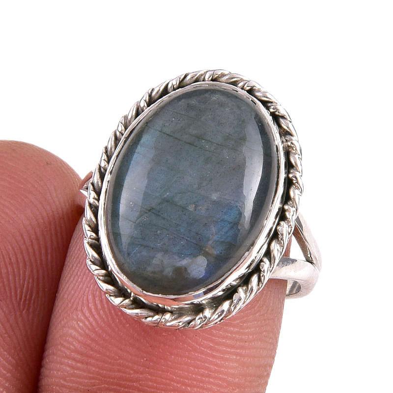 Ювелирное кольцо из чистого серебра 925 пробы с натуральным лабрадоритом, размер 7 p7F53