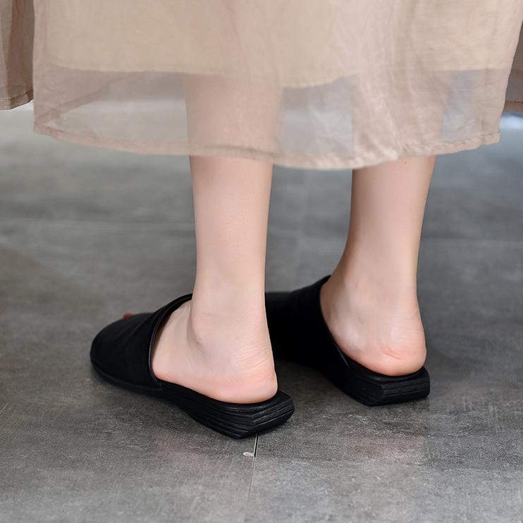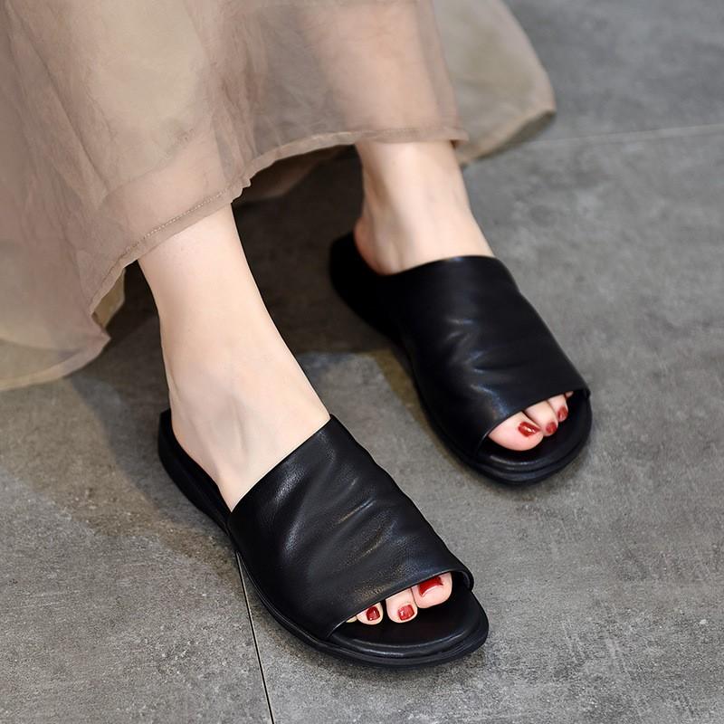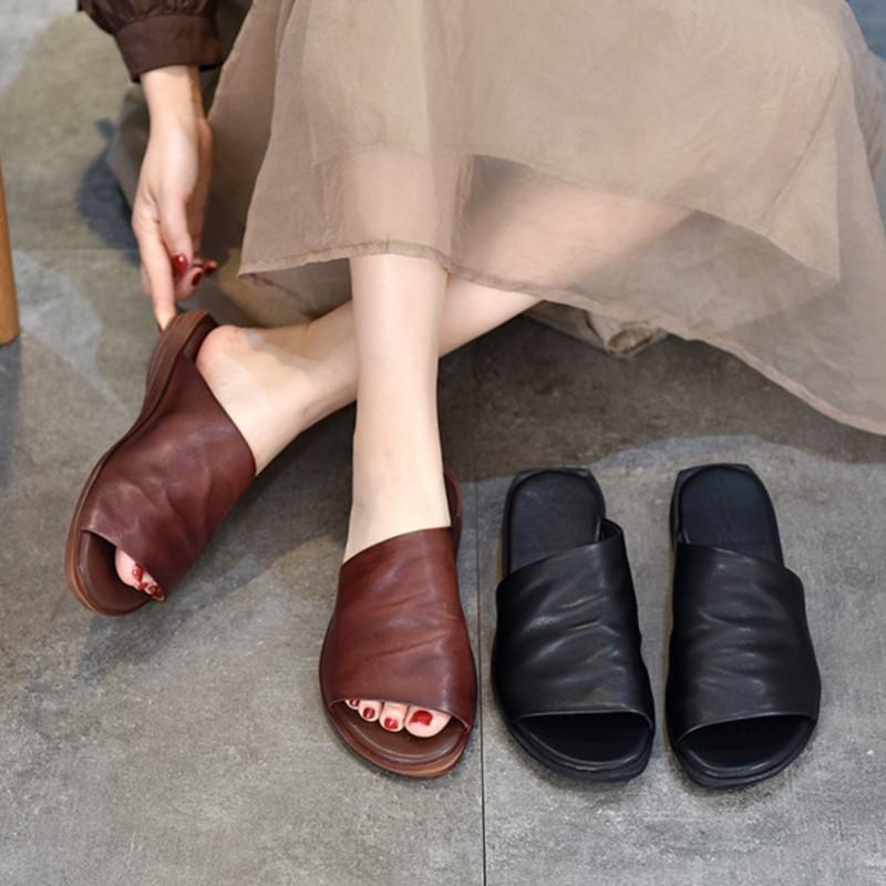 Модные уличные тапочки, женские шлепанцы из натуральной кожи в стиле ретро, универсальные туфли ручной работы на плоской подошве в стиле ретро с открытым носком