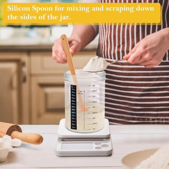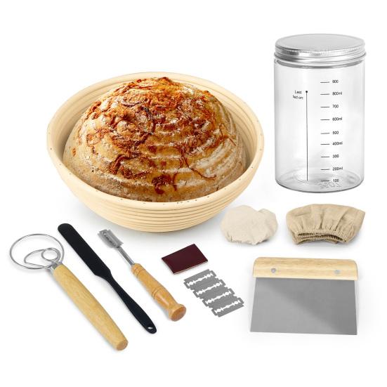 Полный стартовый набор для закваски: Идеально подходящий для начинающих, этот набор включает в себя 9-дюймовую экологически чистую корзину для расстойки, изготовленную из натурального ротанга, а также льняную подкладку и крышку для оптимального брожения теста.. В комплект также входит лента для маркировки температуры пищевого зонда для точного контроля температуры, скребок для теста с подробными размерами и подходящие инструменты для детей.
