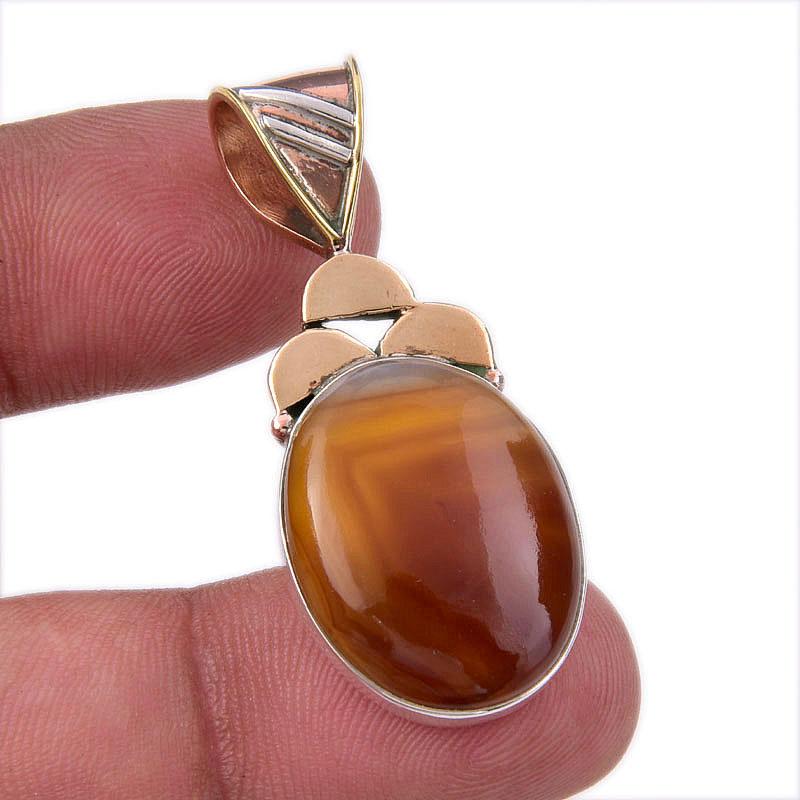 Подвеска из натурального ботсванского агата из стерлингового серебра 925 пробы в двухцветном исполнении 1,75 дюйма U4u88