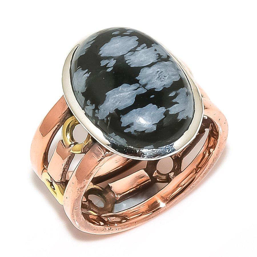 Кольцо из натурального обсидиана со снежинками, двухцветное, из стерлингового серебра 925 пробы, размер S.6.5 t8W25 — купить товар онлайн с бесплатной доставкой по всему миру!