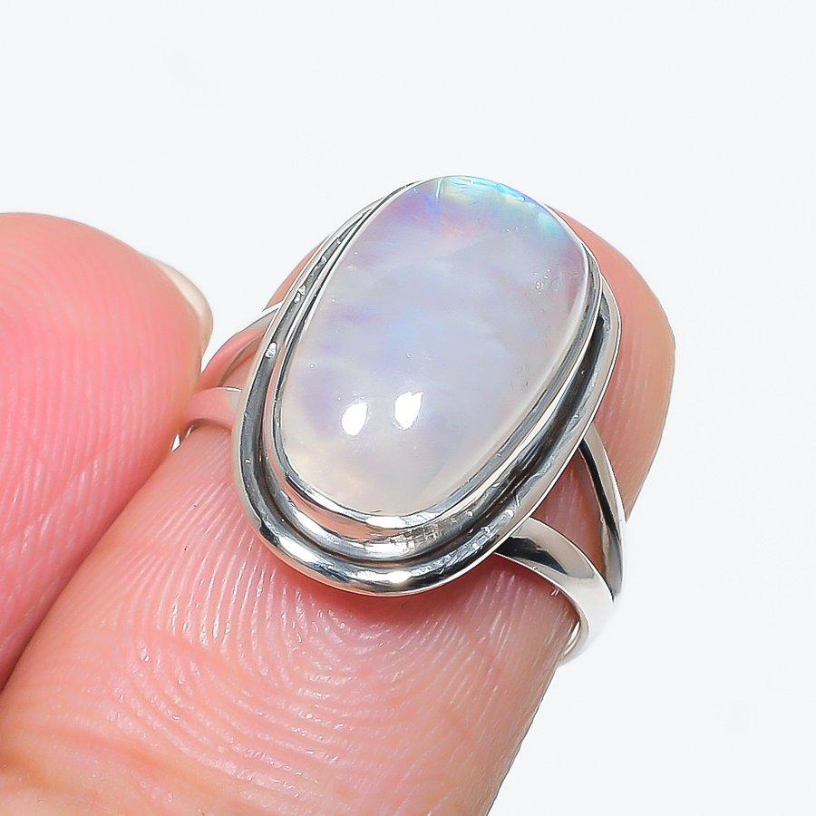 Натуральный Радужный Лунный Камень Драгоценный Камень 925 Проба Стерлинговое Серебро Подарочное Кольцо S.6 f3E03
