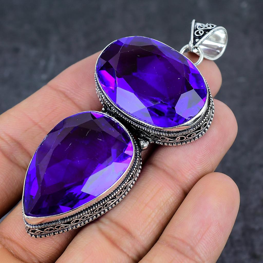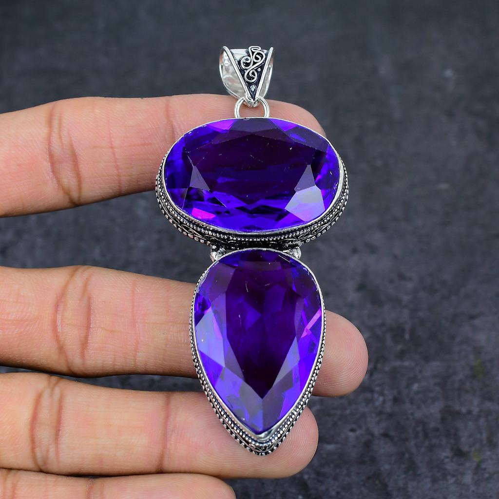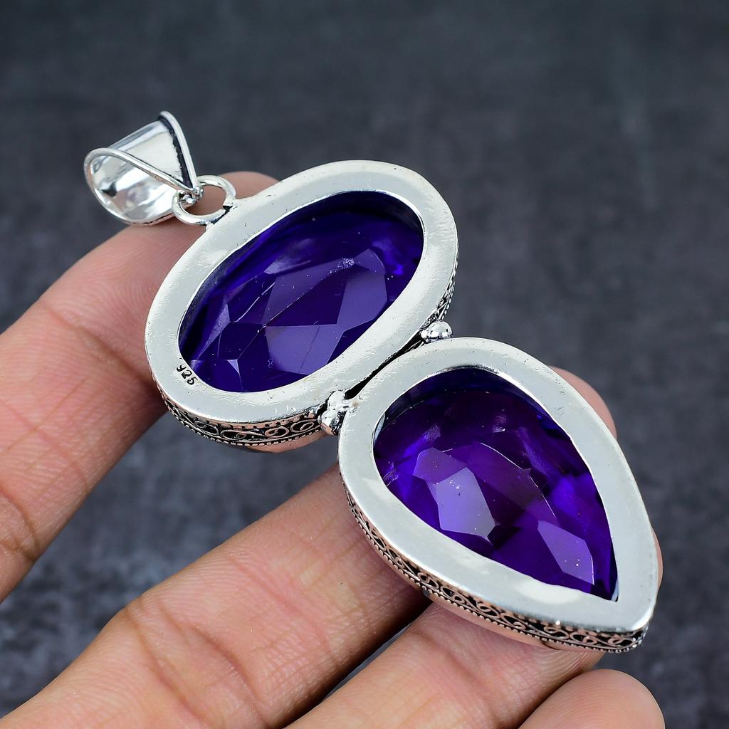 Ювелирный кулон из стерлингового серебра 925 пробы с натуральным фиолетовым аметистом 3,31 дюйма V2M48