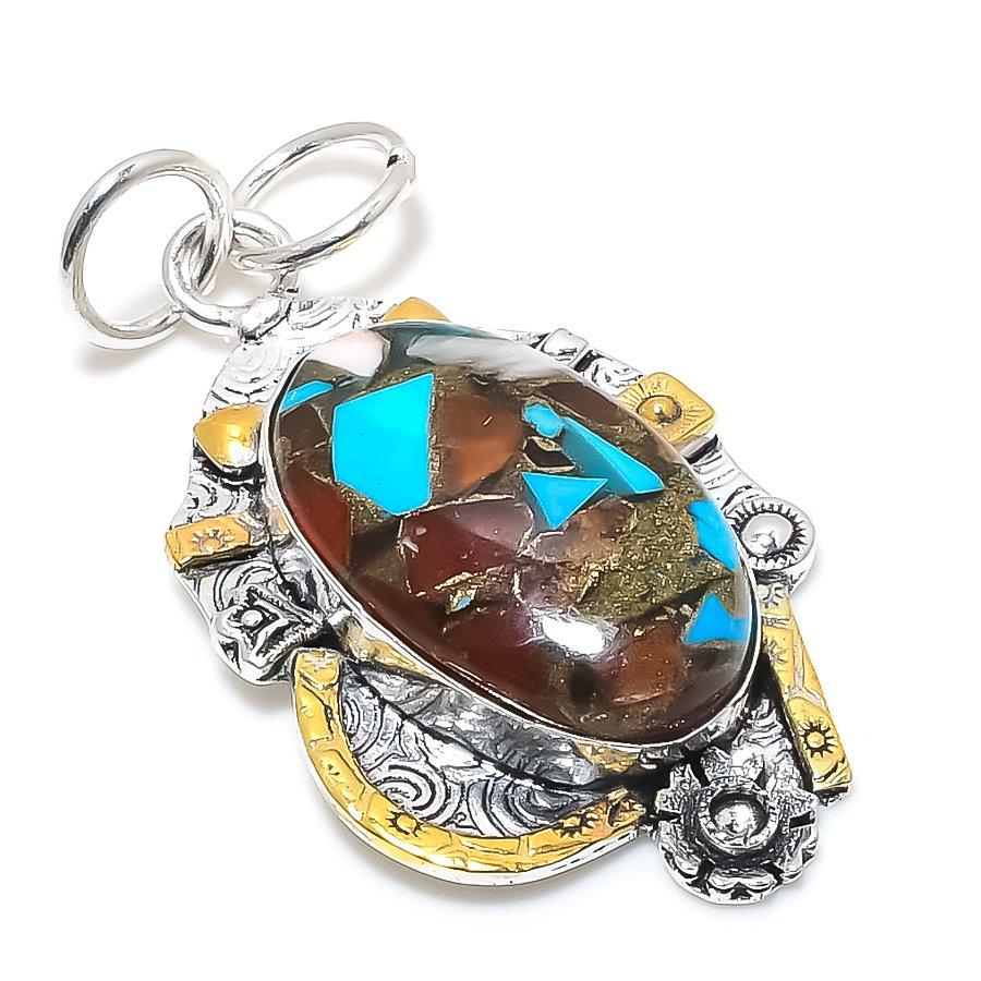 Двухцветный кулон из стерлингового серебра 925 пробы с натуральным драгоценным камнем колючая устрица длиной 2,17 дюйма