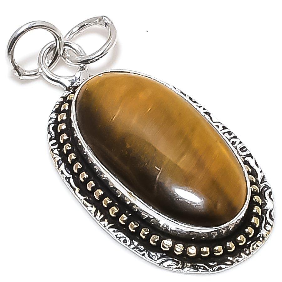 Двухцветный кулон из стерлингового серебра 925 пробы с натуральным тигровым глазом, размер 1,85 дюйма