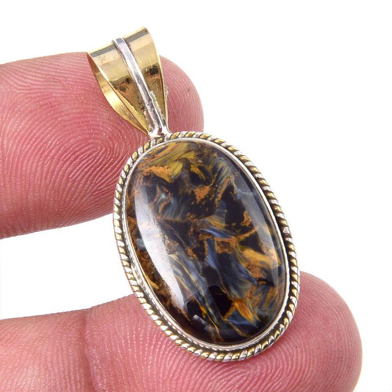Подвеска из натурального драгоценного камня Питерсит из стерлингового серебра 925 пробы, двухцветная, 1,25 дюйма, w5M36