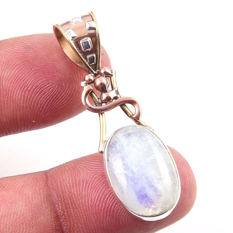 Натуральный Радужный Лунный Камень Самоцвет 925 Стерлинговое Серебро Двухцветный Кулон 1,50" n1V43