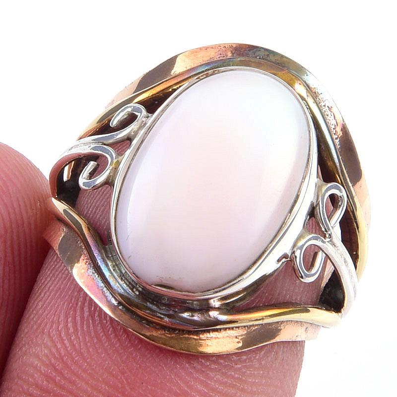 Кольцо из двухцветного серебра 925 пробы с натуральным розовым опалом ручной работы S.5 U5G44