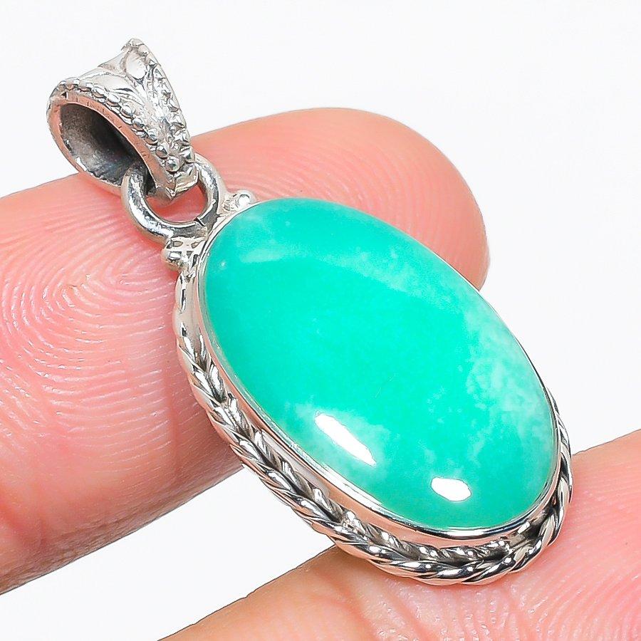 Подвеска из натурального хризопраза из стерлингового серебра 925 пробы 1,50 дюйма v1P01