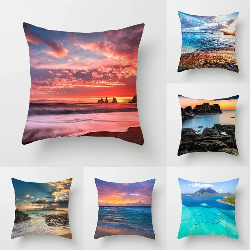 Чехол для подушки для гостиной, дивана, автомобиля, роскошное украшение для дома, чехол для подушки с изображением заката, пляжа, пейзажа, чехол для подушки