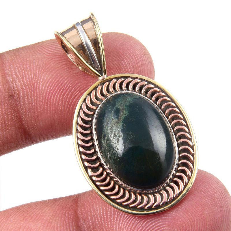 Натуральный камень Гелиотроп 925 Проба Стерлинговое серебро Двухцветная подвеска 1,50" j6d31