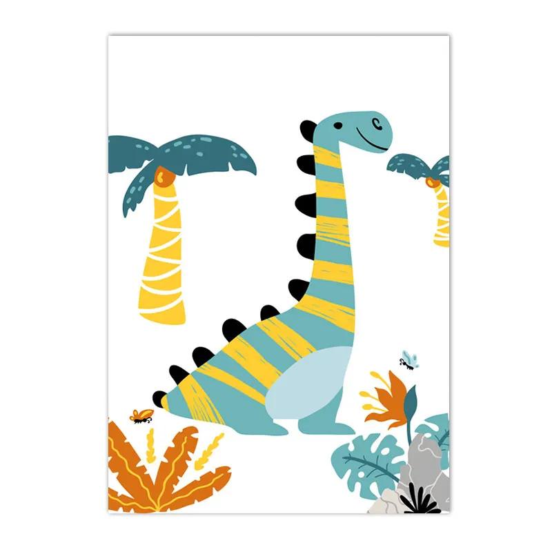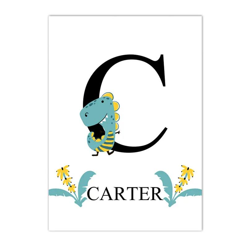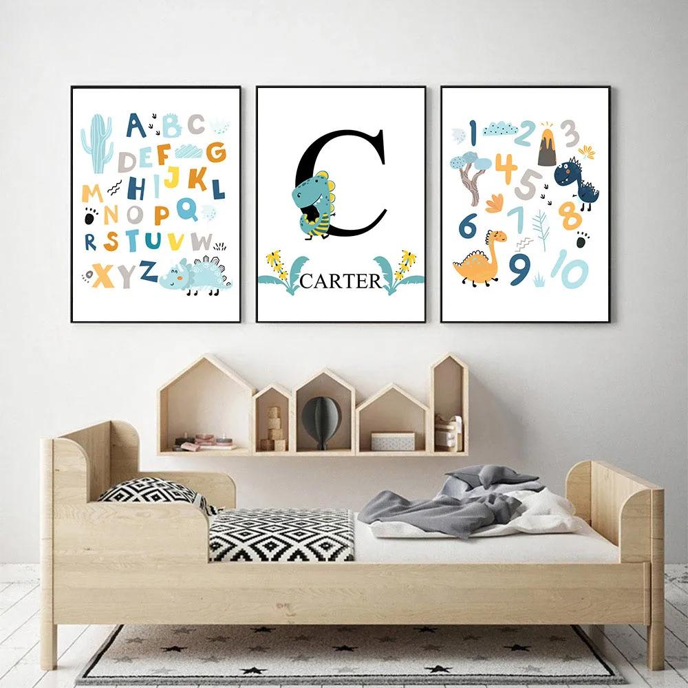 Alphabet and Number Wall Poster for Boys, Custom Name Canvas Painting, Colorful Dinosaur Print, Nursery Wall Art Picture, Kids R
