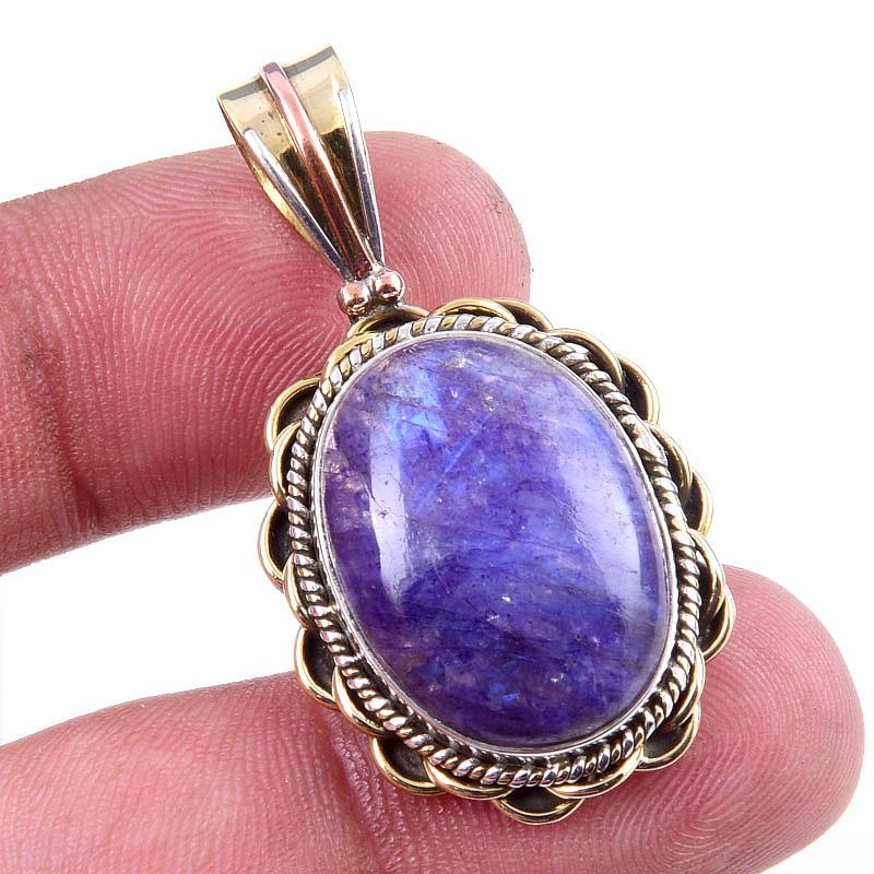 Подвеска из натурального фиолетового лунного камня из цельного серебра 925 пробы в двух тонах 1,50'' r2l49