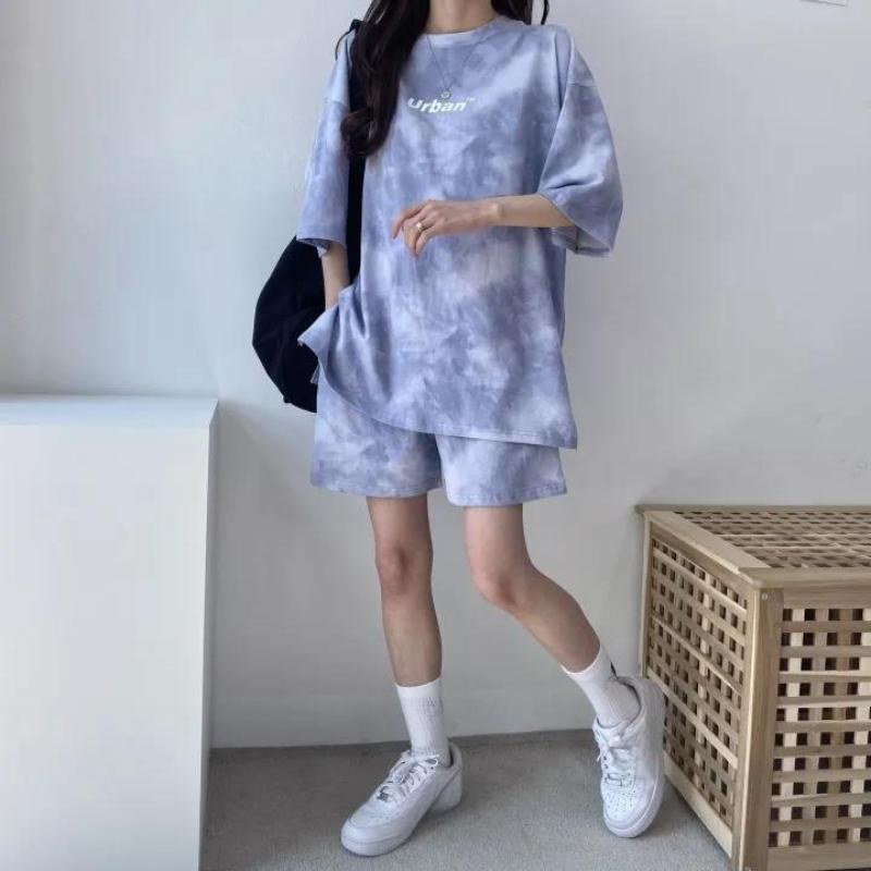 Спортивные костюмы Женская спортивная одежда Хлопковые шорты с круглым вырезом и круглым вырезом Комплекты из двух предметов Свободные повседневные футболки с короткими рукавами из 2 предметов Шорты Костюмы 2024