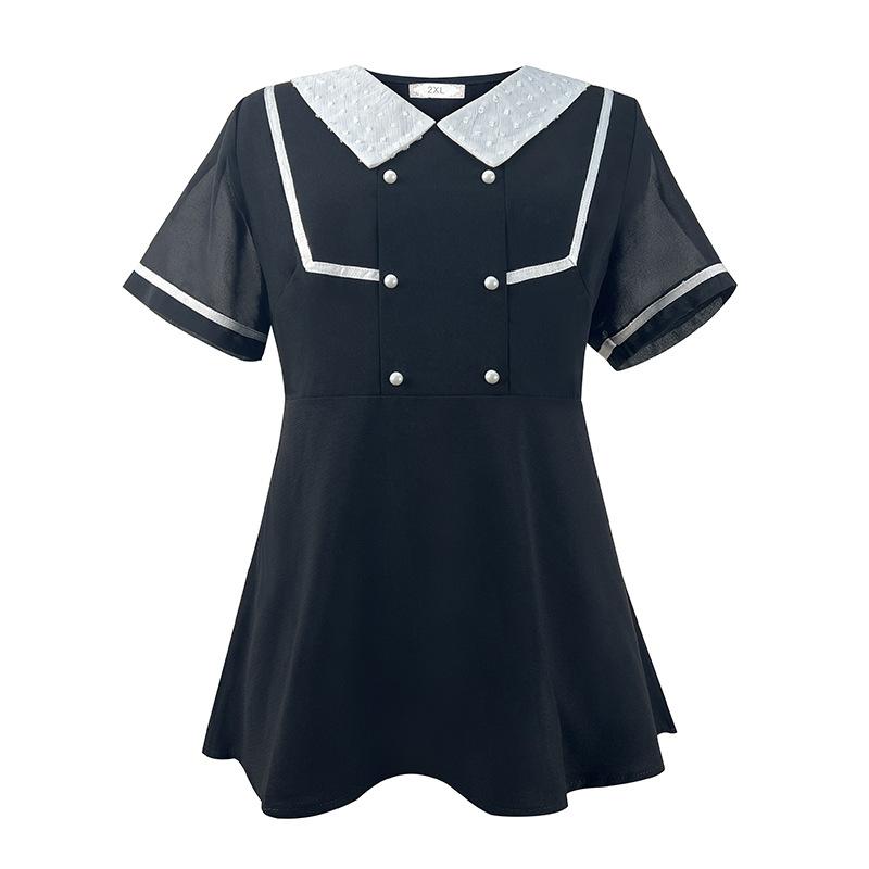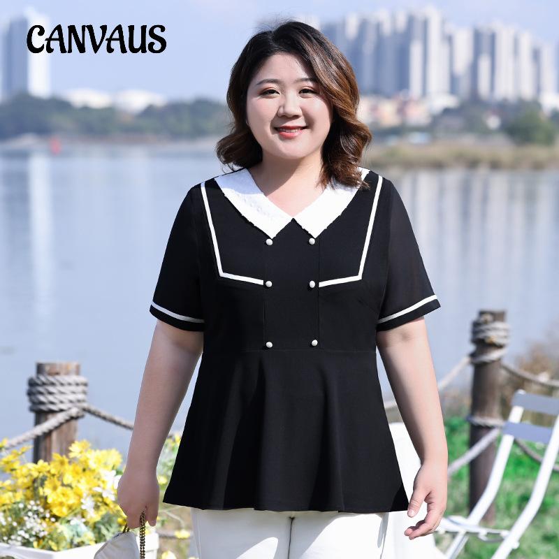 Женская шифоновая рубашка больших размеров, летняя тонкая модная блузка с кукольным воротником и v-образным вырезом с короткими рукавами