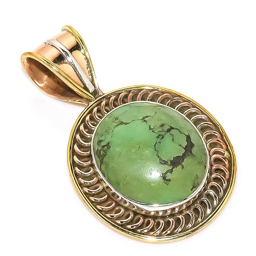 Натуральная тибетская бирюза двухцветная 925 пробы стерлинговое серебро кулон 1,50'' N6N89