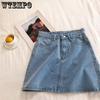 Женская летняя универсальная джинсовая полуюбка с высокой талией, корейская версия студенческой простой однотонной короткой юбки трапециевидной формы на бедрах