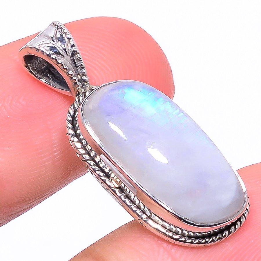 Подвеска из натурального радужного лунного камня из стерлингового серебра 925 пробы 1,18 дюйма K8j13 — купить товар онлайн с бесплатной доставкой по всему миру!