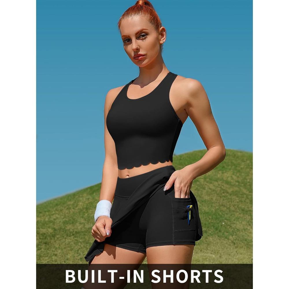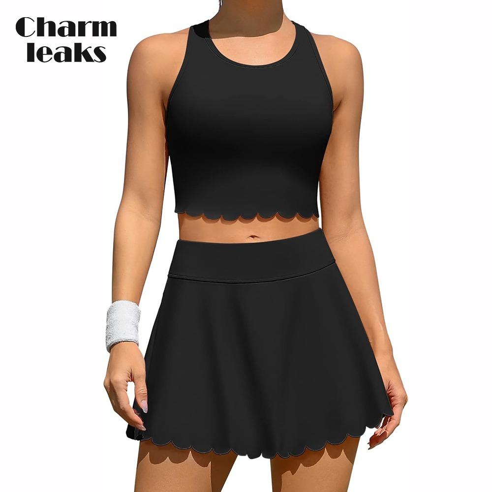 Charmleaks Теннисная юбка 2 предмета Теннисные платья для женщин Спортивное платье для тренировок с шортами и карманами Юбка для бадминтона