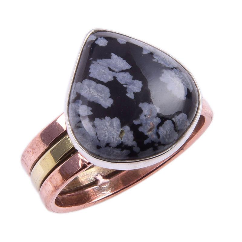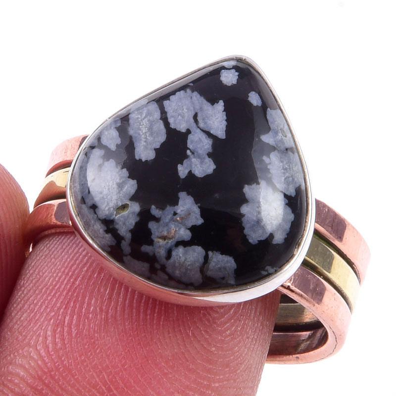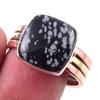 Кольцо из натурального обсидиана снежного с 925 пробы стерлингового серебра в двух тонах S.9.5 g8C35