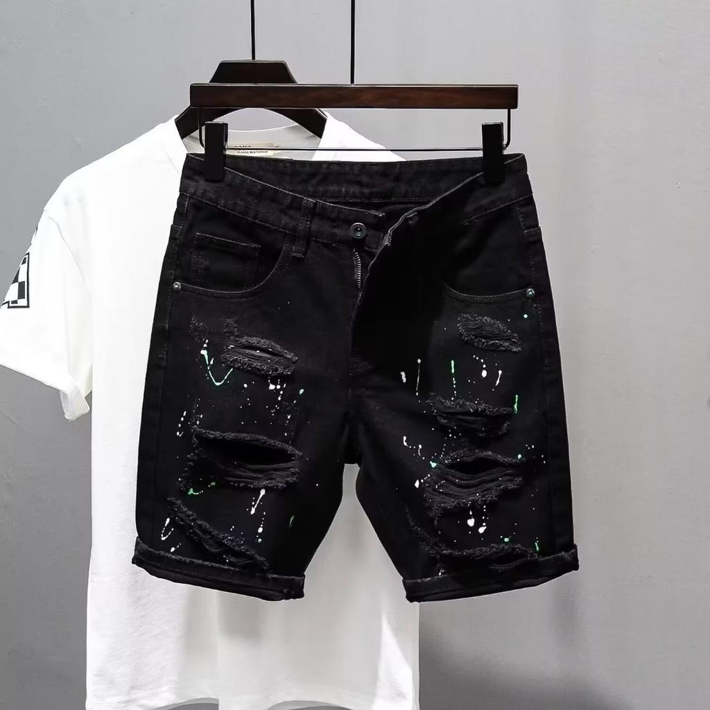 Летние мужские черные джинсовые шорты, модные моющиеся эластичные облегающие джинсовые шорты с пятью точками средней длины — купить товар онлайн с бесплатной доставкой по всему миру!