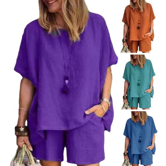 Стиль: Создайте непринужденный шикарный образ в этом модном костюме-двойке со свободными короткими рукавами и шортами непринужденной посадки.. Комбинация хлопка и льна придаст вашему повседневному ансамблю нотку изысканности и идеально подойдет для создания непринужденной, но стильной атмосферы.