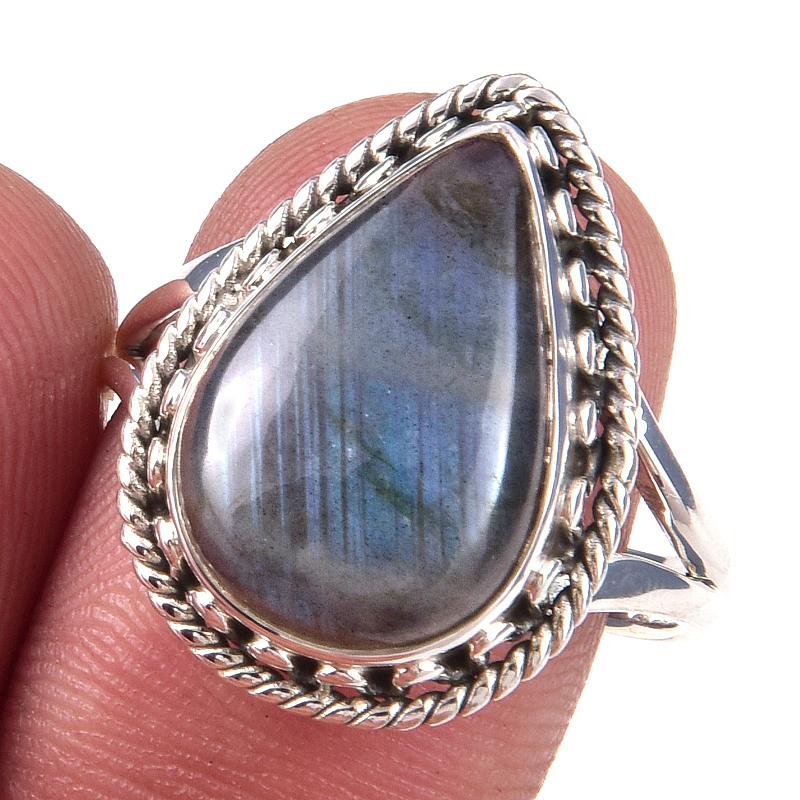 Natural Labradorite Gemstone Handmade 925 Solid Sterling Silver Ring Size 9 r7z00