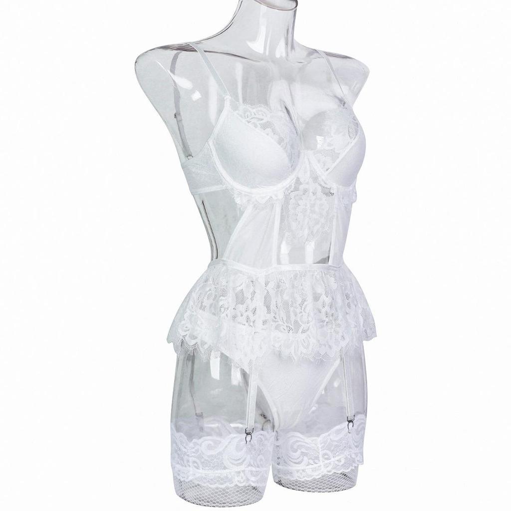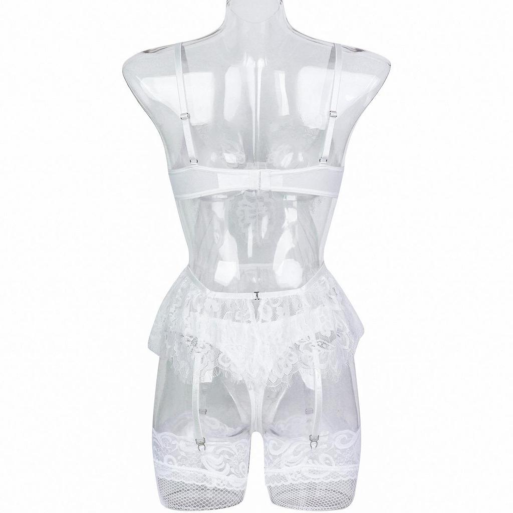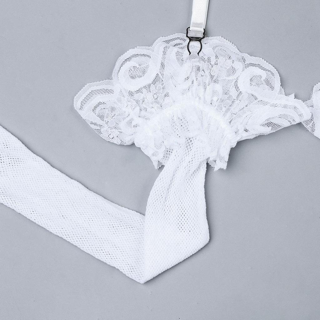 Aduloty Белые кружевные кружевные ресницы с полой строчкой, милая юбка, чулки с подвязками, длинные ажурные чулки, костюм