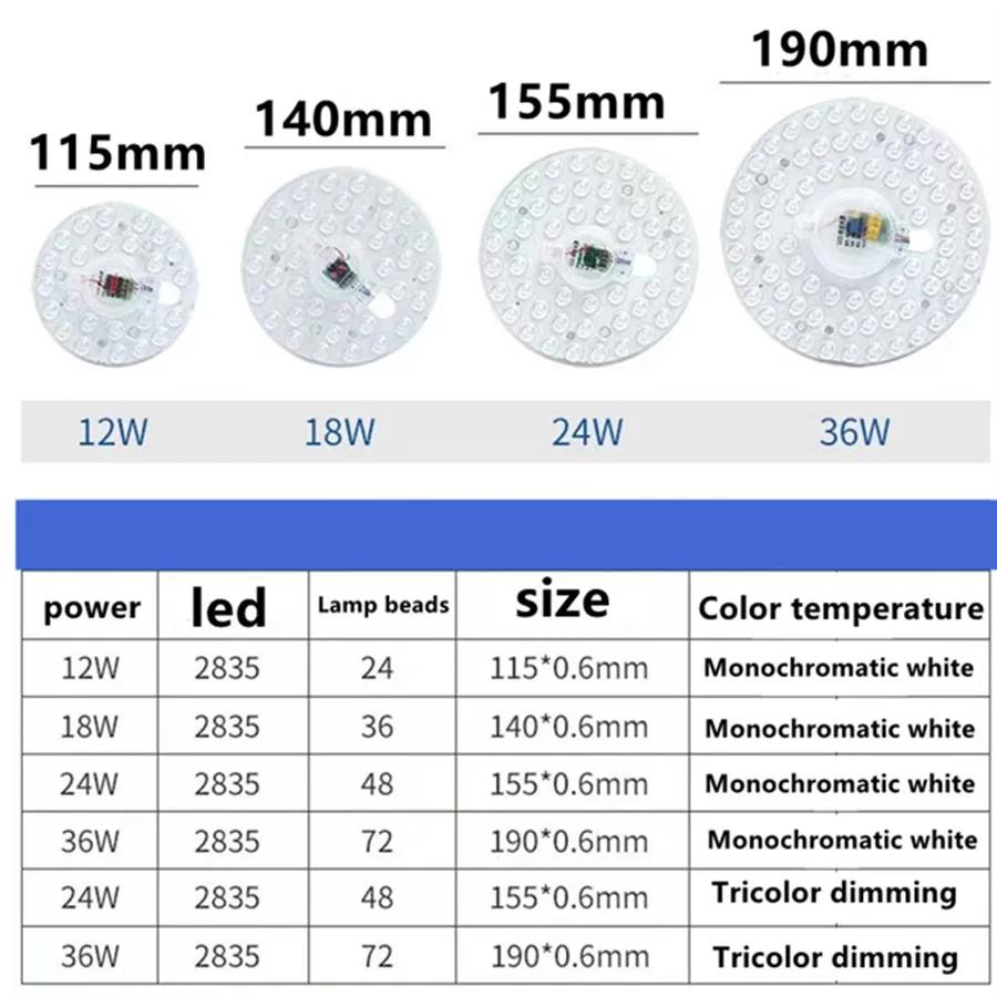 Светодиодный потолочный светильник, панельный светильник, модульная лампа, 36 Вт, 24 Вт, 18 Вт, энергосберегающий, 220 В, круглый потолочный светильник, настенный светильник для внутреннего освещения