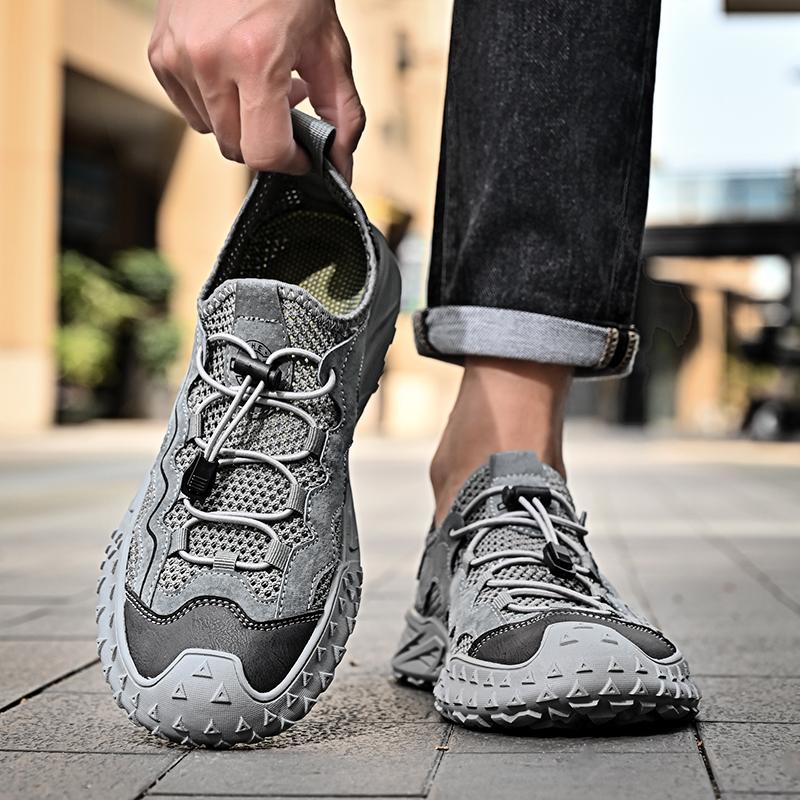 Супер дышащая походная обувь, резиновая противоскользящая походная обувь, уличные кроссовки для предотвращения столкновений, мужская прогулочная обувь из свиной кожи